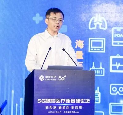 中国移动成研院赵立君副总经理发表了题为《5G新基建引领智慧医疗未来发展新探索——领航新基建、共创新时代》的主题演讲。赵立君副总经理以医疗行业信息化发展趋势为切入点,对5G医疗新基建的政策背景与建设方向进行了解读,分享了成研院目前在5G+智慧医疗方面的产品和研发成果。